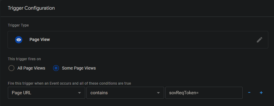 Add a trigger which fires when the sovendus request token is in the url